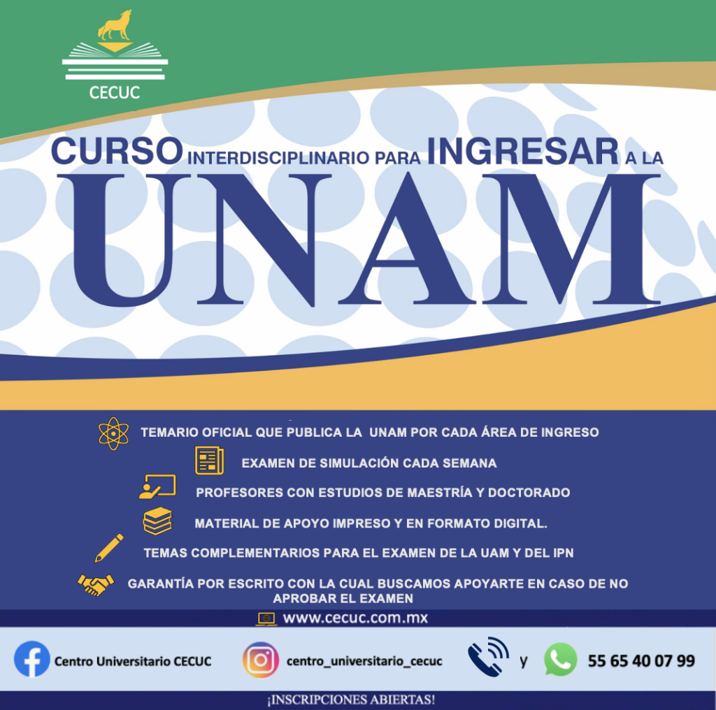 ¡Prepárate y aprueba el examen de la UNAM 2026!. Curso de preparación presencial, a distancia o híbrido. ¡Inscripciones abiertas! Informes al 55 56 01 82 43